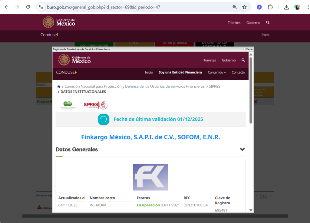 Es una herramienta de consulta y difusión con la que podrás conocer los productos que ofrecen las entidades financieras, en este caso Finkargo México, S.A.P.I. de C.V. SOFOM, E.N.R., sus comisiones y tasas, las reclamaciones de los usuarios, las prácticas no sanas en que incurren, las sanciones administrativas que les han impuesto, las cláusulas abusivas de sus contratos y otra información que resulte relevante para informarte sobre su desempeño.